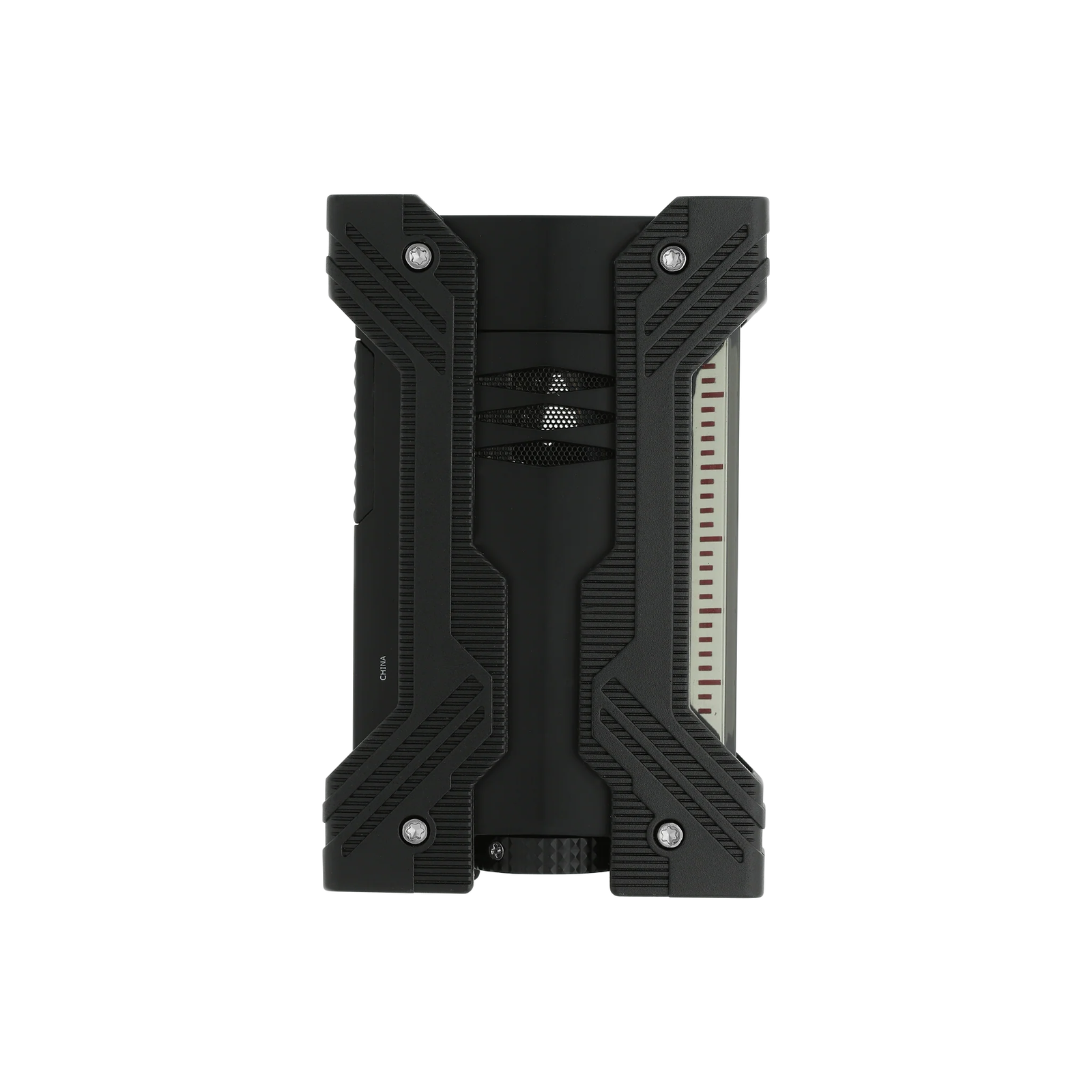 The S.T. Dupont Défi XXtreme is the ultimate evolution of the extreme lighter, featuring a powerful double torch flame with pyramid-shaped fires resistant to winds up to 70 km/h and tested in conditions from −10 °C to +45 °C. Enlarged rubber bumpers, a guilloché-textured grip, and a large side fuel-level window make it as functional as it is distinctive. Built for the most demanding environments without surrendering a single gram of Parisian refinement.