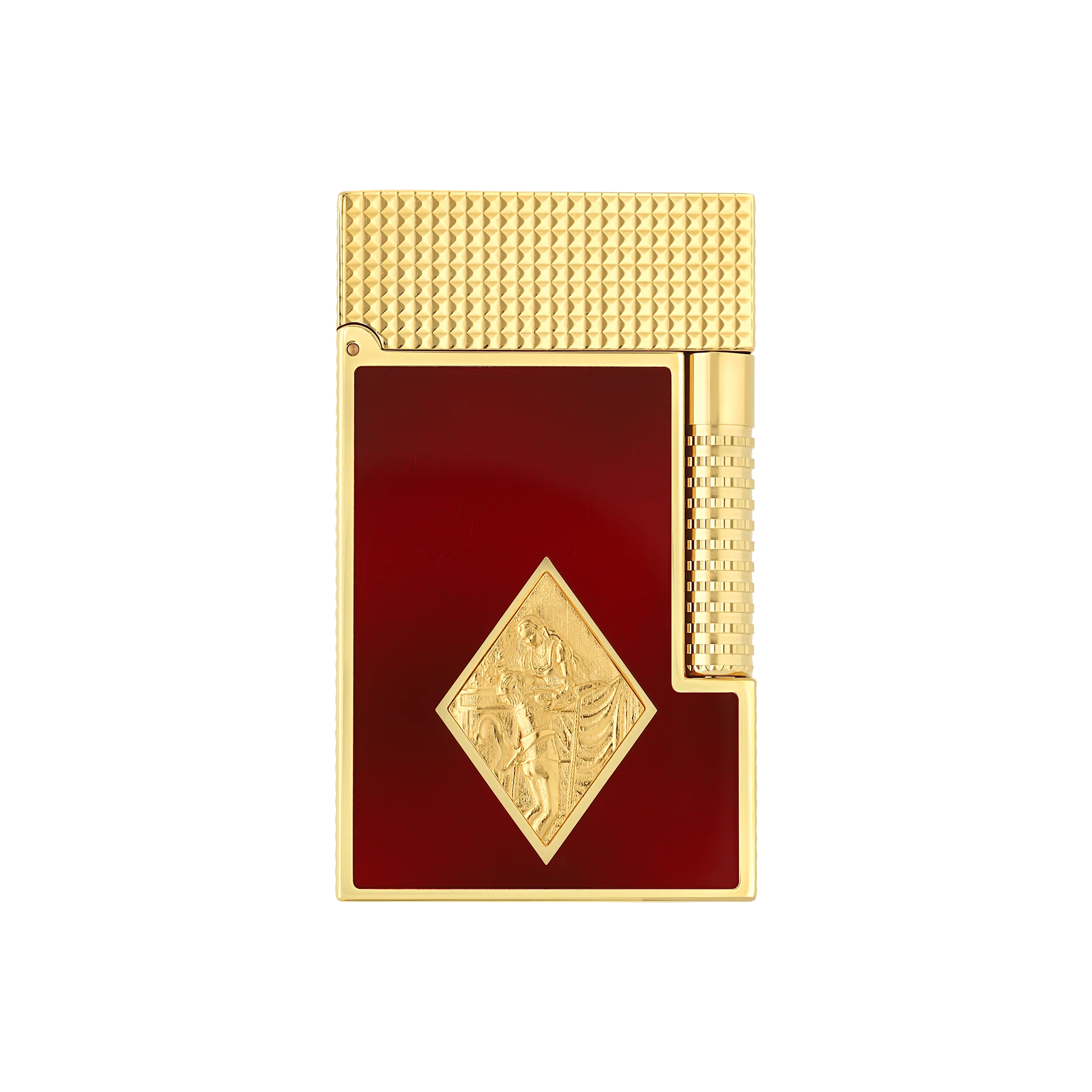 To celebrate the 150th anniversary of Romeo and Julieta, S.T. Dupont signs an exclusive collaboration inspired by the strength of passion and expertise. A tribute to the art of exceptional cigars and the beauty of timeless objects. Lighter Le Grand Dupont Cling red lacquer shiny popote decorated with the medallion in gold finish pattern Romeo y Julieta. Diamond point guilloche hat. Yellow gold finish. Equipped with a double ignition system for yellow flame or blue flame.ย Associated lighter block: red (REF 900651)ย Associated gas refill: red (REF 900435)ย Lighter delivered empty of gas, refill sold separately. Screwdriver included to change the stone.